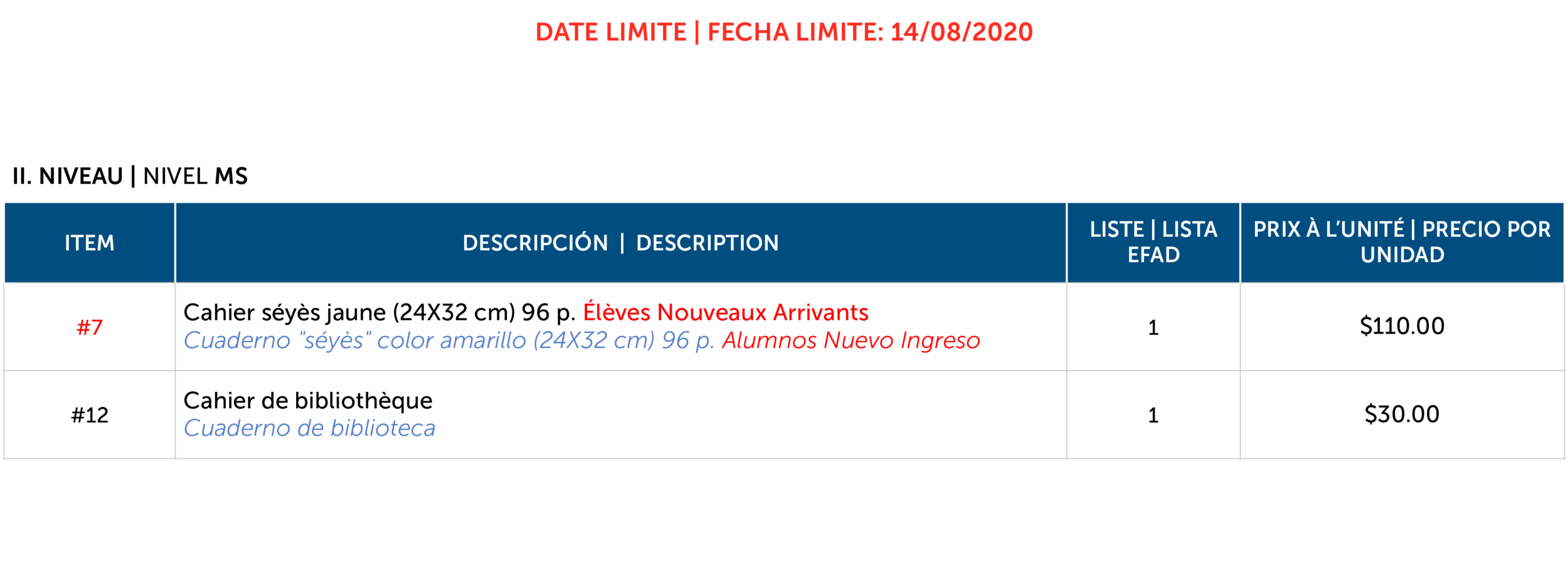FOURNITURES SCOLAIRES FRANÇAISES | MATERIAL ESCOLAR FRANCÉS 2020-2021
